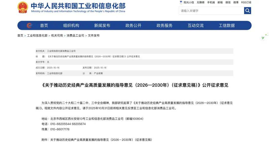 工信部发布《关于鞭策汗青典范财产高质量成长的指点看法(2026-2030年)(收罗看法稿)》。图片来历:工信部官网2025年10月,工业和消息化部消费品工业司就《关于鞭策汗青典范财产高质量成长的指点看法(2026—2030年)(收罗看法稿)》公开收罗看法,看法中明白将茶叶等文化底蕴深挚的保守财产列为沉点成长范畴。