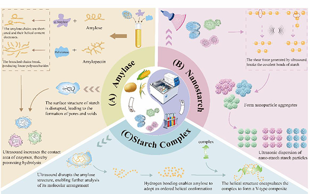 近日,中国科学院化学物理研究所天然药物取化学丈量研究核心食物化学取平安检测团队颁发了关于淀粉回生方面的综述文章,系统总结了超声波辅帮淀粉改性范畴的最新研究进展,为绿色、高效的淀粉功能化改性手艺供给了主要参考。该论文深切切磋了超声波参数优化、布局-机能关系解析及协同改性策略,展示了超声波手艺正在淀粉改性范畴的广漠前景。